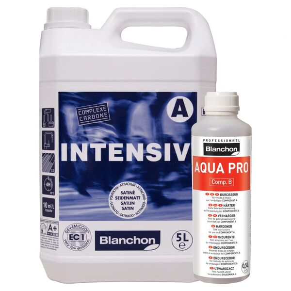 Its unique formulation has a quick curing time combined with exceptional resistance to spillage and wear and tear. It keeps the clear natural wood shade and it can be applied on most commonly used wood species and it awarded the European Cfl S1 for resistance against fire. Blanchon Intensiv is a two-component, water-based 100% polyurethane wood floor lacquer. Its technical performance and very low VOC(1) rating formula complies with highly selective environmental requirements. It has the German label Gev-Emicode EC1CR which offers the most ecological approach for internal application.
