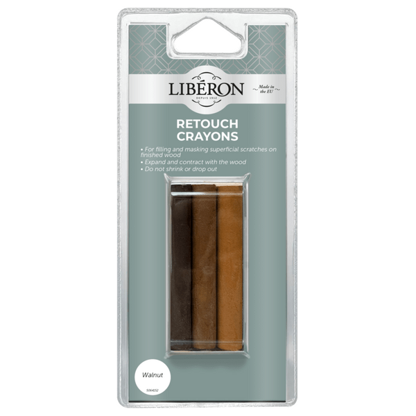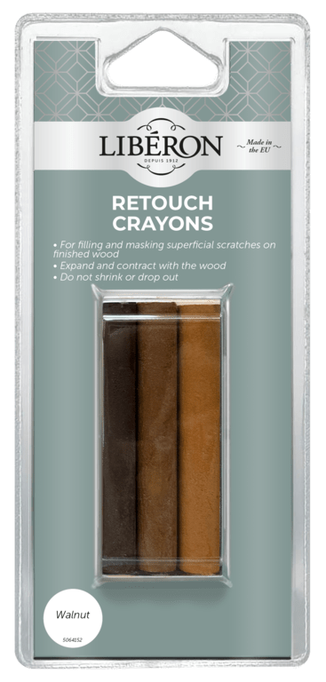 Liberon Retouch Crayons can be used to fill scratches, nail holes, worm holes etc. in furniture and other woodwork.